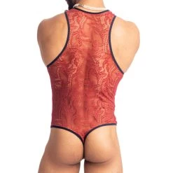 Body L Homme Invisible Red Dahlia HW164DAH. Combinaison très sexy en dentelle. Une pièce hautement sensuelle. La finesse et la transparence de sa matière vous raviront, et accentueront votre masculinité. Une somptueuse collection alliant confort et élégance pour être romantique plus que jamais. 71% Polyamide, 29% Elasthanne.