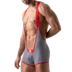 Body Stripes TOF PARIS TOF104R. Body sexy dans une coupe ajustée avec des bretelles extensibles. Tissu coton strech. La poche avant doublée permet un effet Push up. Bandes élastiques rouges mettant en valeur les épaules, le dos en y dessinant un Y. Ecusson au nom de la marque sur le haut de la poche frontale. 96% Coton, 4% Elasthanne.