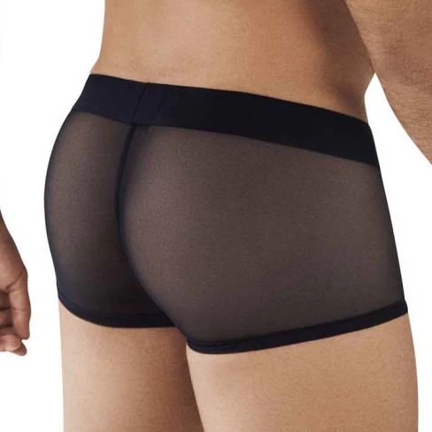 Boxer Clever Harmony 0801. Boxer trÚs sexy grùce à son tissu mesh transparent. MatiÚre microfibre qui permet un ajustement parfait pour un max de sensualité. Poche avant en tissu uni. Ceinture élastique logotée au nom de la marque. 94% Nylon, 6% Elasthanne.