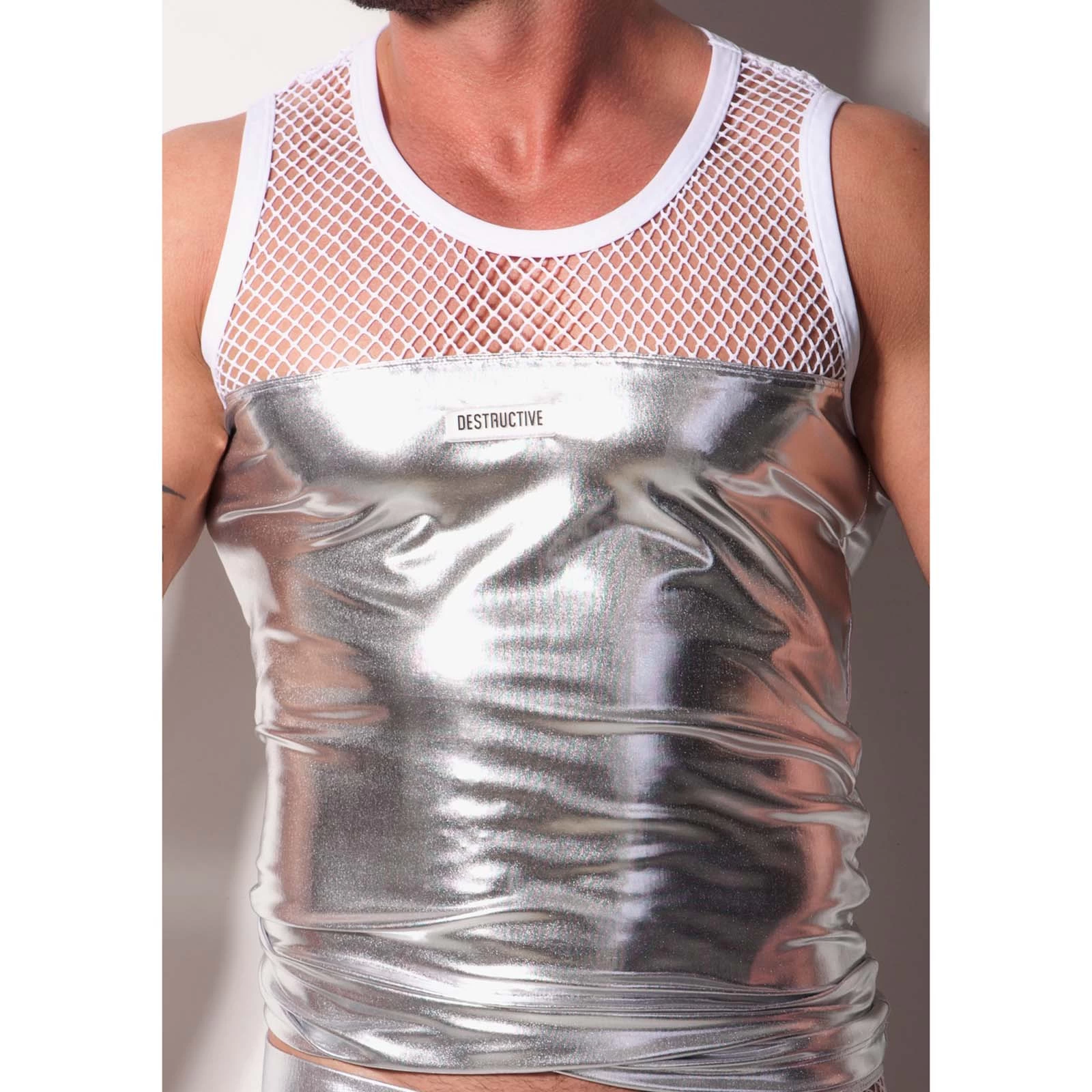 Debardeur DESTRUCTIVE 1DTT02. Debardeur trÚs sexy en résille sur le haut. MatiÚre brillante. Ceinture élastique. Logo DESTRUCTIVE en silicone. 80 % Polyamide, 20% Elasthanne.