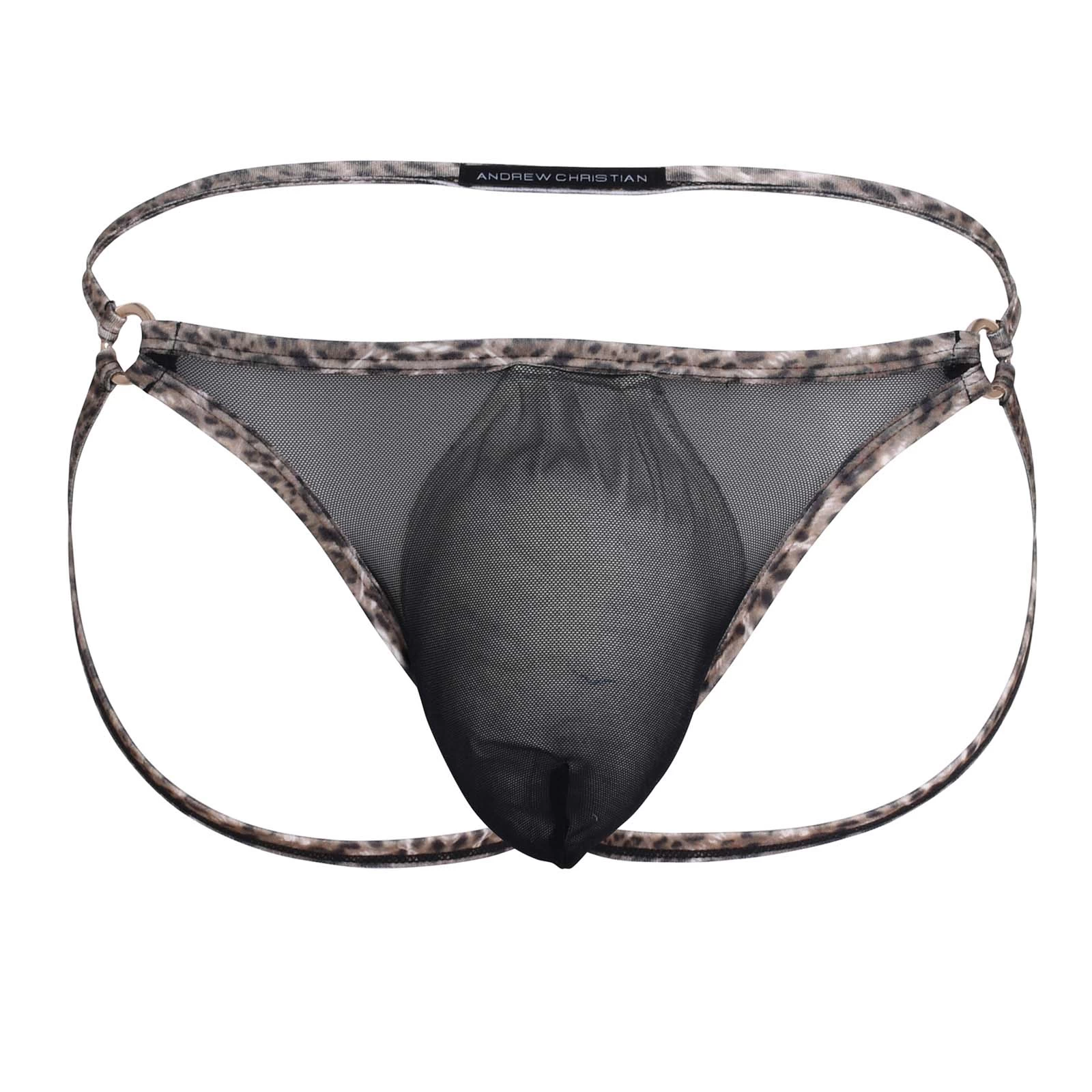 Jock Strap Andrew Christian Sheer Leopard 92557. Ceinture Ă©lastique avec des motifs lĂ©opard. Poche avant almost naked qui offre un excellent maintien. Tissu trĂšs confortable et transparent, vous allez adorer le porter. Sangles Ă l’arriĂšre trĂšs fines en motifs lĂ©opard. 80% Polyamide, 20% Elasthanne.