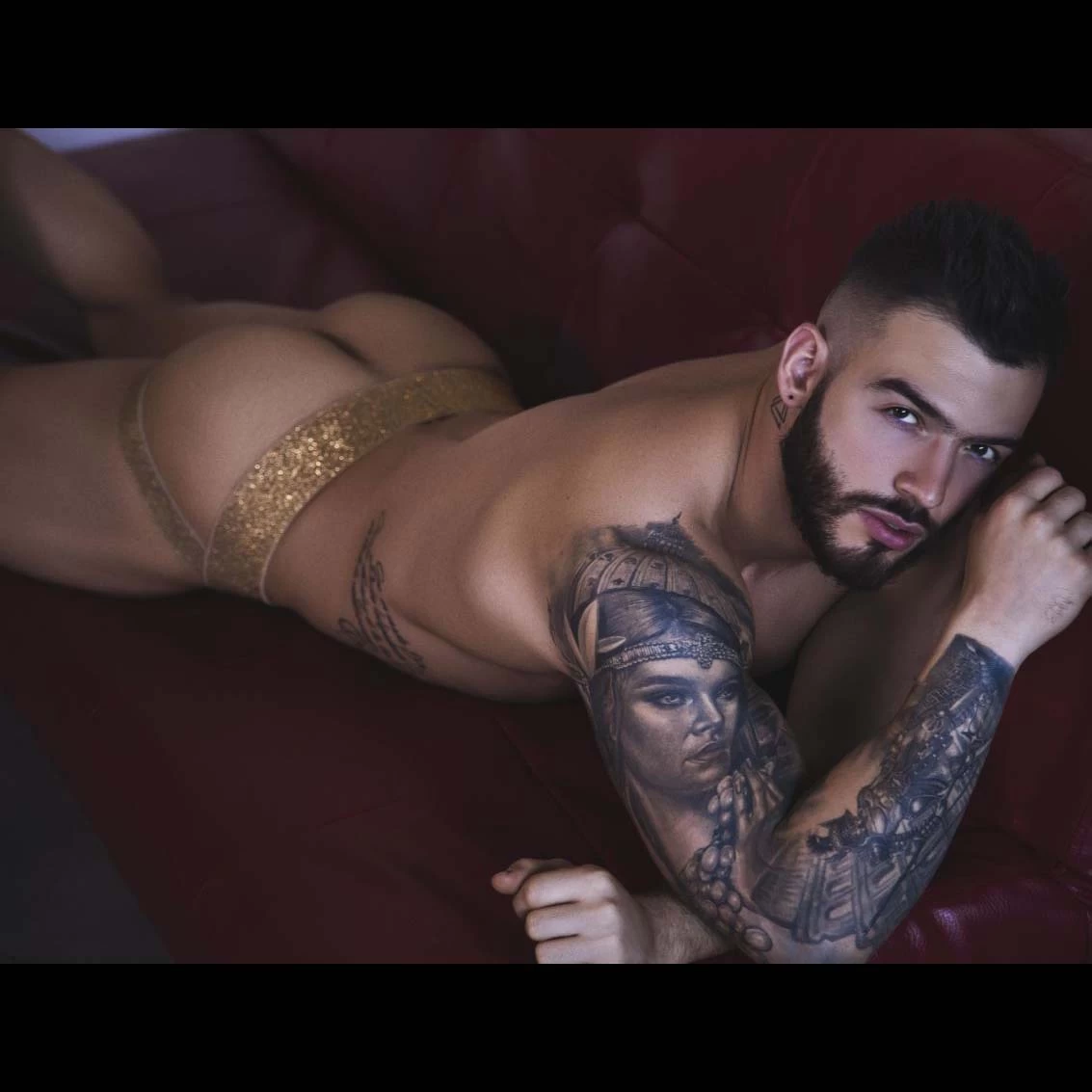 Jock Strap Pikante Argelia PIK0981. Large ceinture élastique dorée. Ajustement parfait. TrÚs sexy. Taille basse. Poche frontale semi transparente. 94% Nylon, 6% Elasthanne.