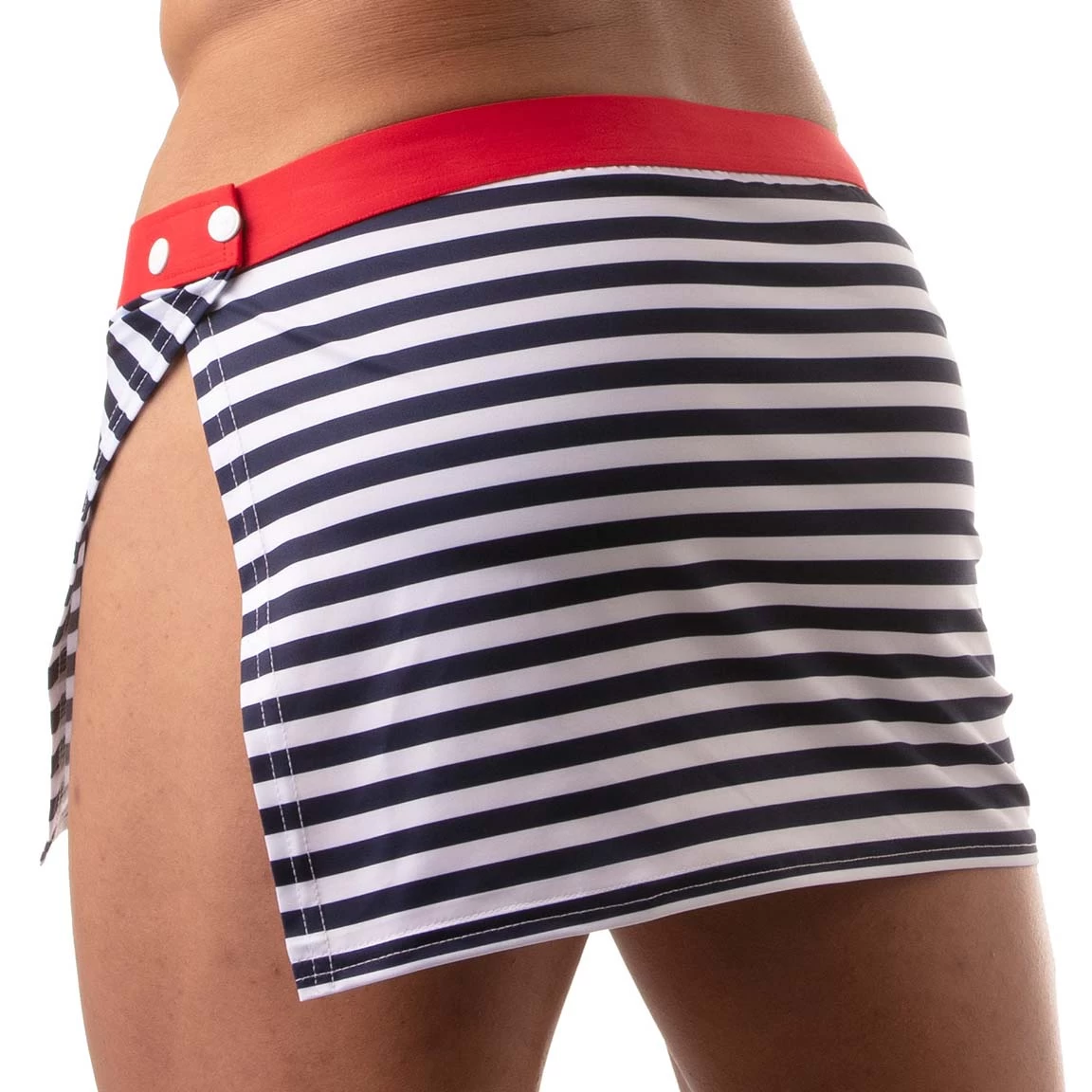 Jupe Iconic TOF PARIS TOF214BU. Jupe avec un imprimé marinière. Ouverture sur le côté gauche avec deux boutons pression. Logo de la marque sur le bas de la jupe. 89% Polyester, 11% Elasthanne.