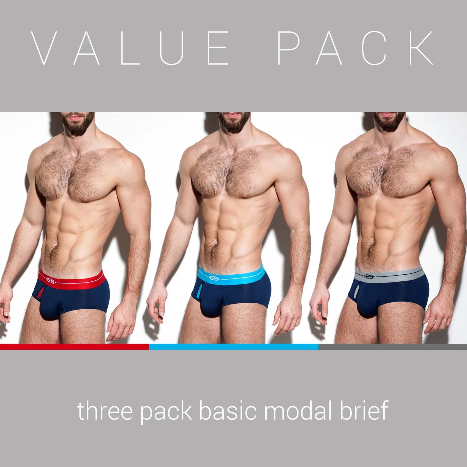 Pack de 3 Slips ES Collection UN248P. Pack de 3 Slips autant sexy que confortable ! Il vous suivra tout au long de votre journĂ©e, un basique Ă adopter en vitesse ! Une large ceinture avec le logo ES Collection sur le devant. Une poche frontale doublĂ©e. Ultra confortable, lĂ©ger et soyeux grĂące au modal. 75% Modal, 20% Coton, 5% Ălasthanne.