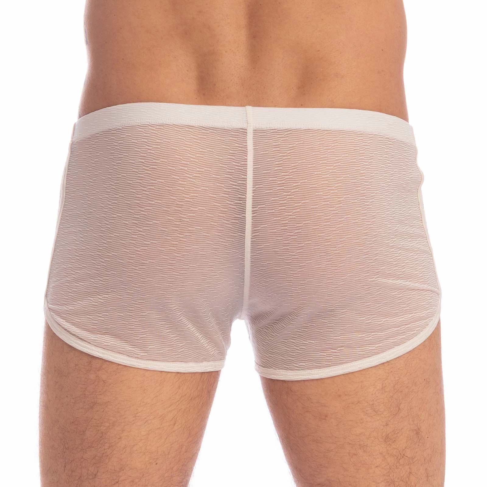 Short L Homme Invisible La Crème HW129VEI. Vous allez adorer sentir l’air effleurer votre corps travers sa matière microfibre très airée et fine, associé le avec un jockstrap ou string ou encore sans rien pour profiter pleinement de l’aspect ajouré et respirant. Ce short est parfait pour mettre en valeur votre corps, tout en le dévoilant. Totalement transparent et sans doublure. 94% Polyamide, 6% Elasthanne.