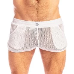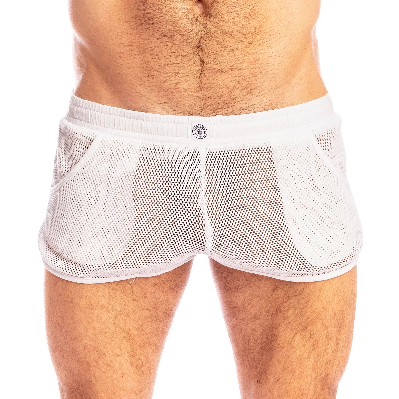 Short L Homme Invisible Madrague SP05MAD. Vous allez adorer sentir l’air effleurer votre corps travers sa matière style filet, associé le avec un jockstrap ou string ou encore sans rien pour profiter pleinement DE l’aspect ajouré et respirant. Ce short est parfait pour mettre en valeur votre corps, tout en le dévoilant. L’élastique avec cordon de serrage à la taille permet, quant à lui, au short lounge de s’ajuster à votre corps pour un meilleur maintien. 100% Coton.
