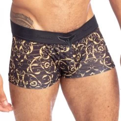 Shorty L Homme Invisible Oppulence dÂOro UW05ORO. DĂ©couvrez le charme irrĂ©sistible de ce V Boxer. TrĂšs belle matiĂšre avec des motifs ornĂ©s baroque et de rayures transparentes. Ergonomique et confortable ce Shorty vous rendra encore plus sexy. Ce Shorty est dotĂ© d un confort exceptionnel et d un style sĂ©ducteur. Poche avant en V, elle vous procure un effet avantageux soulevant lĂ©gĂšrement votre intimitĂ© masculine et assurant un excellent maintien grĂące Ă son effet push up. Poche frontale et coutures rĂ©duites au minimum. Ceinture Ă©lastique. Une somptueuse collection alliant confort et Ă©lĂ©gance pour ĂȘtre romantique plus que jamais. 10% Polyamide, 80% Polyester, 10% Elasthanne.