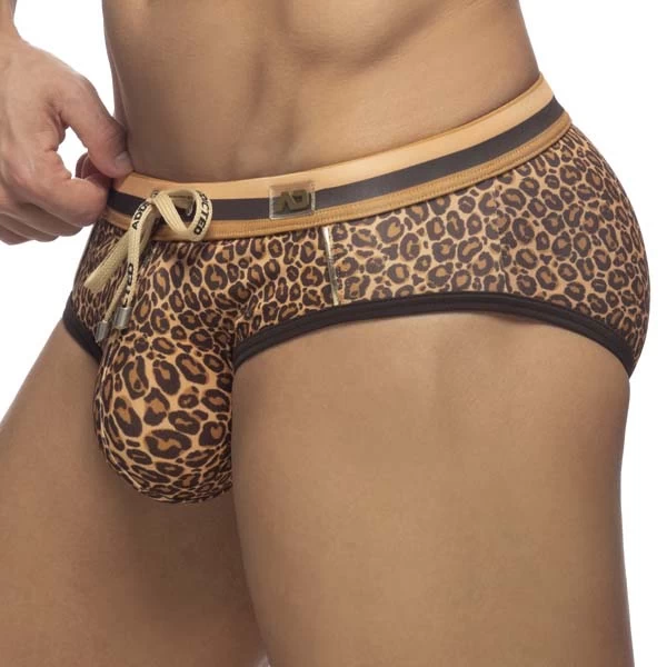 Slip de Bain Addicted Leopard Stripes ADS267. Mettez en avant vos atouts avec le systĂšme Pack Up amovible (mousse fine et discrĂšte) sur le devant pour un galbe parfait mĂȘme lorsque vous sortez de l eau. Ceinture Ă©lastique avec cordon de serrage logotĂ© Addicted. Logo AD en silicone sur la ceinture. Bordures contrastĂ©es. 80% Polyester, 20% Elasthanne.