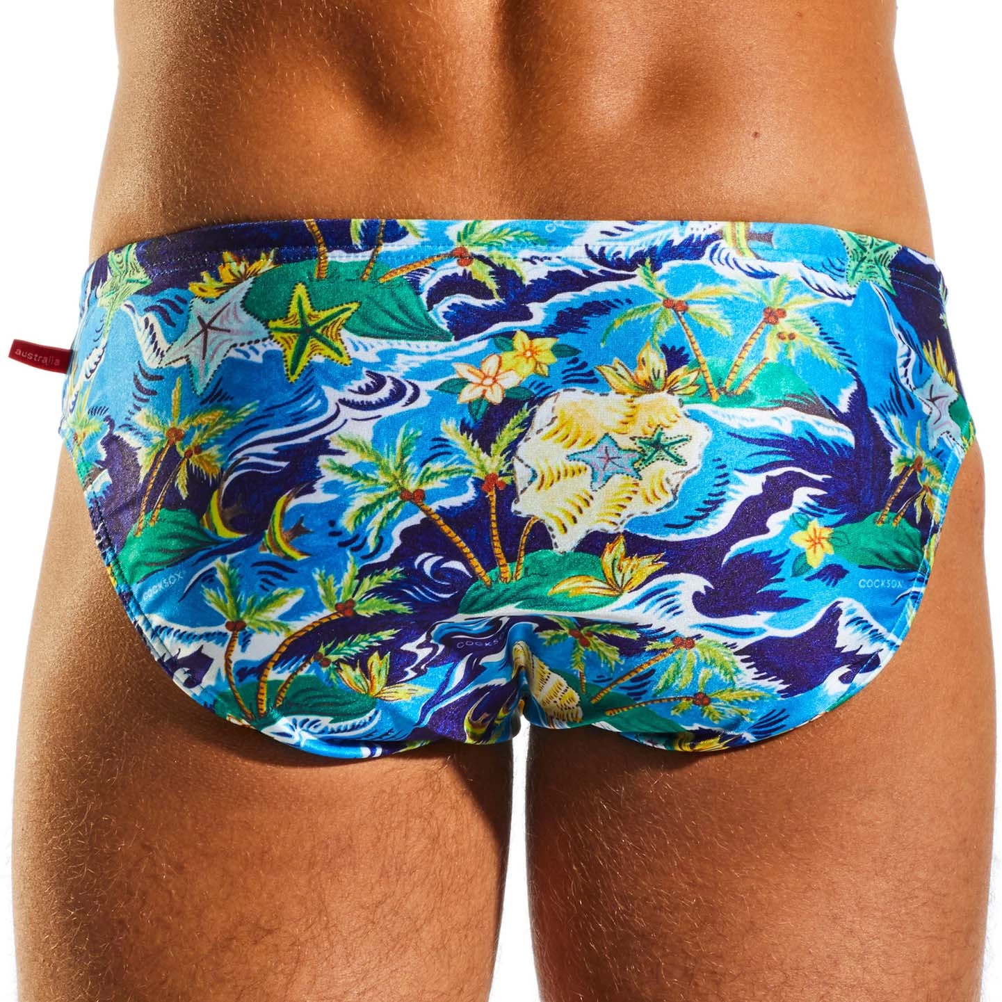 Slip de bain CockSox Paradise Palms CX04PR. Ce Slip de bain vous offre un confort et un soutien irréprochable. Fabriqué dans un tissu doux et résistant. Cordon de serrage intérieur. Motifs tropicaux. 80% Polyester, 20% Elasthanne.