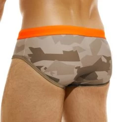 Slip de bain Modus Vivendi Desert FS2313. Slip de bain avec un imprimé camouflage. Logo de la marque au niveau de la ceinture. Cordon de serrage intérieur. Sechage rapide grùce à son mélange de matiÚres. Lavage à la main recommandé. 80% Polyester, 20% Elasthanne.