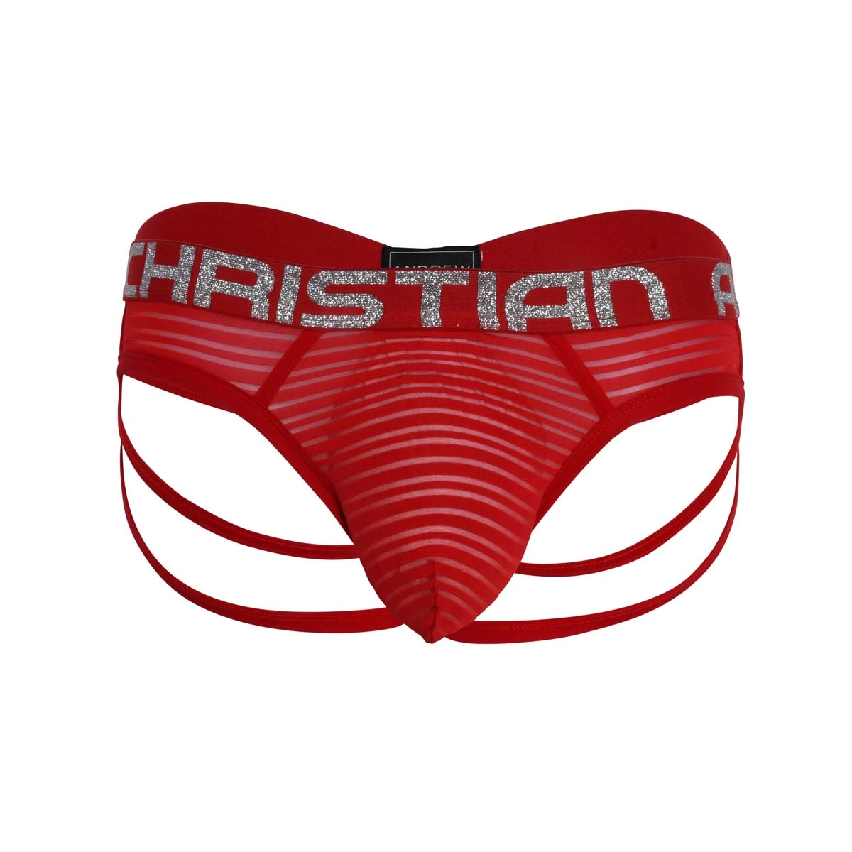 String Andrew Christian Mesh Stripe Sexy 92387. String au tissu en maille rouge et une ceinture étincelante. Poche avant almost naked qui offre un excellent maintien. 95% Polyester, 5% Elasthanne.
