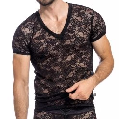 T-Shirt L Homme Invisible Estève MY73EST. Découvrez le charme irrésistible de ce t-shirt en dentelle très fine ornée de motifs. Col V et manches courtes. Il laisse apparaître votre peau grâce à sa transparence délicate et subtile. Le style séducteur de ce t-shirt luxueux vous rendra encore plus sexy que vous êtes. Coupe ajustée. Une somptueuse collection alliant confort et élégance pour être romantique plus que jamais. 88% Polyamide, 12% Elasthanne.