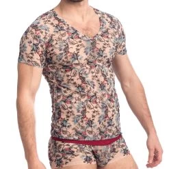 T-Shirt L Homme Invisible Fleurs de peau MY73FDP. DĂ©couvrez le charme irrĂ©sistible de ce t-shirt dans une matiĂšre avec des fleurs brodĂ©es, lĂ©gĂšrement transparente ornĂ©e de feuillage. Col V et manches courtes. Il laisse apparaĂźtre votre peau grĂące Ă sa transparence dĂ©licate et subtile. Le style sĂ©ducteur de ce t-shirt luxueux vous rendra encore plus sexy que vous ĂȘtes. Coupe ajustĂ©e. Une somptueuse collection alliant confort et Ă©lĂ©gance pour ĂȘtre romantique plus que jamais. 46% Polyamide, 46% Polyester, 8% Elasthanne.