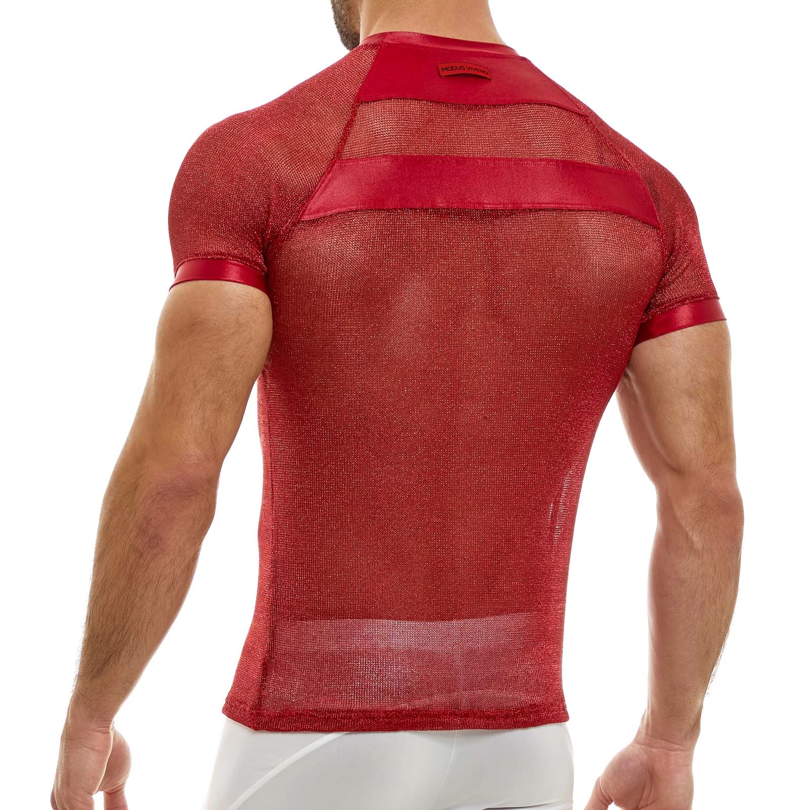 T-Shirt Modus Vivendi Armor 01041. T-Shirt idĂ©al ĂȘtre portĂ© toute la journĂ©e ou lors dÂune soirĂ©e. Le tissu est de haute qualitĂ© et aĂ©rĂ© transparent. Le logo Modus Vivendi est soigneusement placĂ© sur lÂarriĂšre. EntiĂšrement transparent. Deux bandes argentĂ©es sur le haut du dos. 78% Viscose, 19% Lurex, 3% Elasthanne.
